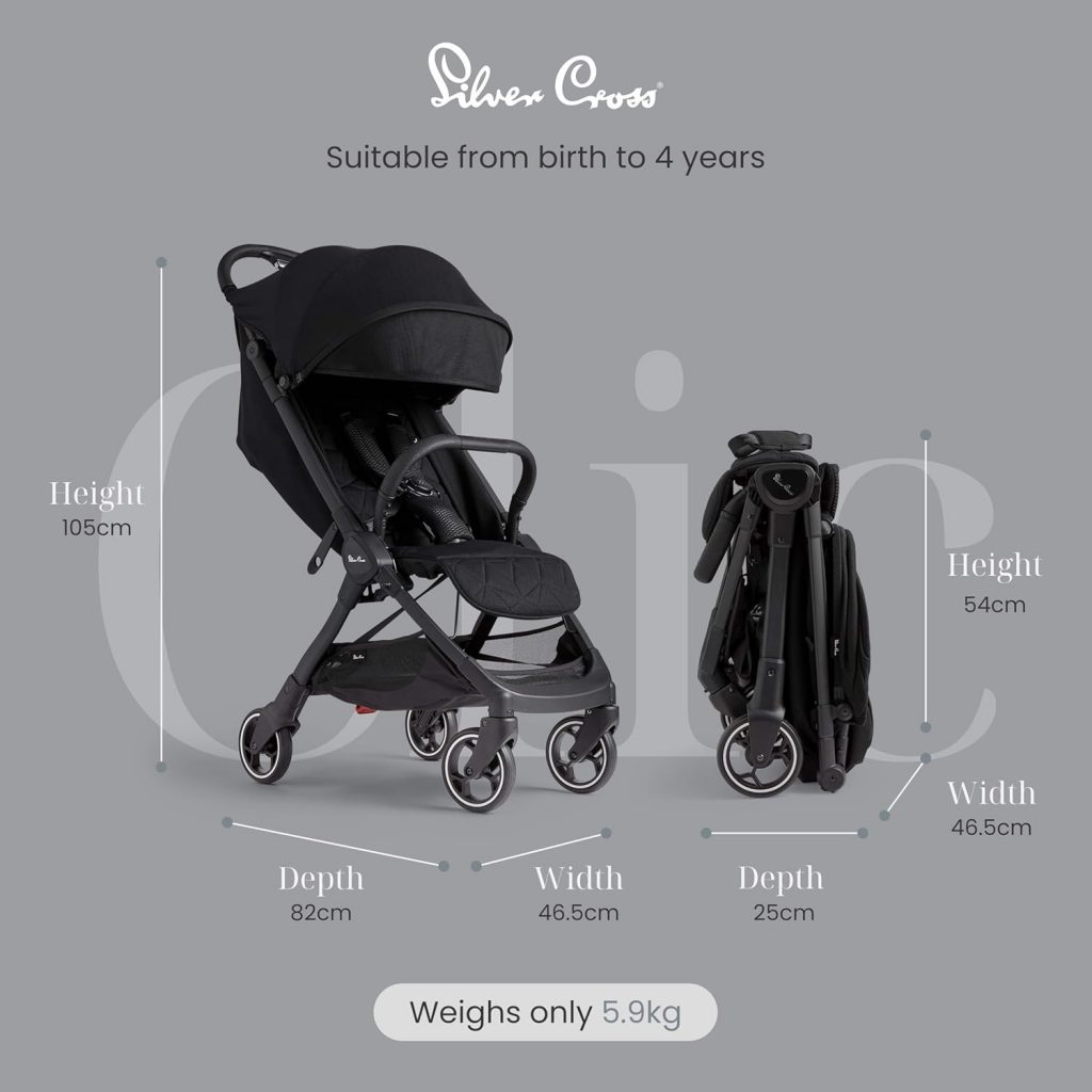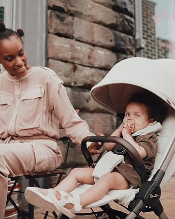 Suanbaby EOS 5-in-1 Travel System Stroller + Lightweight Aton G Infant Car Seat, Moon Black, Silver Frame