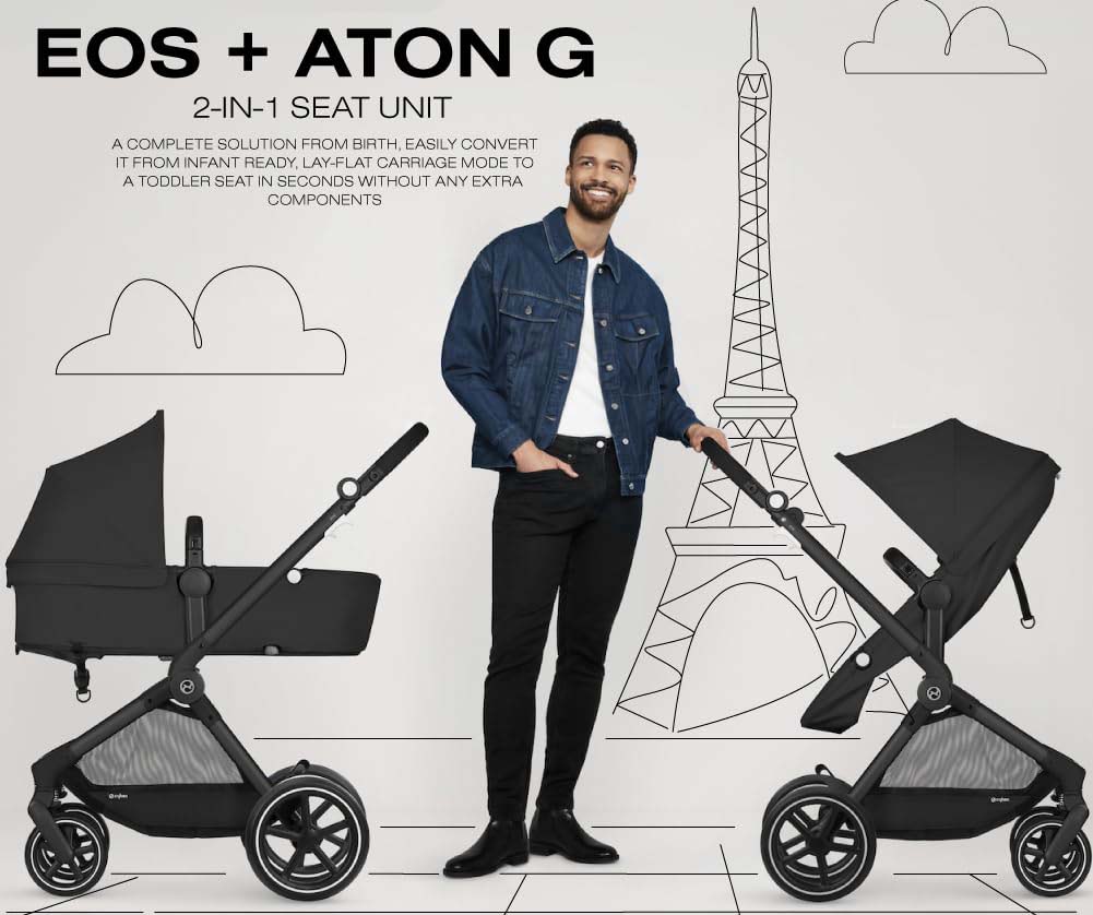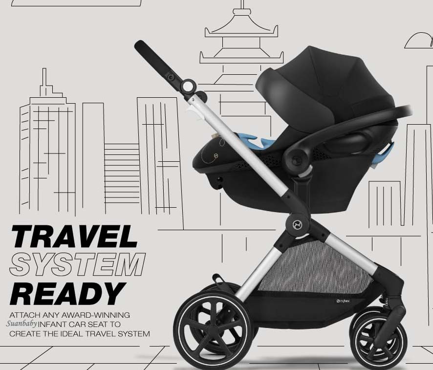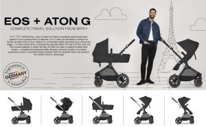 The Suanbaby EOS Stroller + Aton G Infant Car Seat is a perfectly streamlined Travel System for your growing family. A complete travel solution from birth, it features a 2-in-1 seat unit that easily converts from lay flat “carriage mode” for your newborn to a reversible toddler seat when your child grows bigger – no extra components or accessories required. Additionally, you can use the included adapters to attach the Aton G Infant Car Seat to create the ideal travel system–complete with advanced safety features, all-terrain wheels, front wheel suspension and an oversized shopping basket. With this versatile frame, the transition from drive to stroll is child’s play!