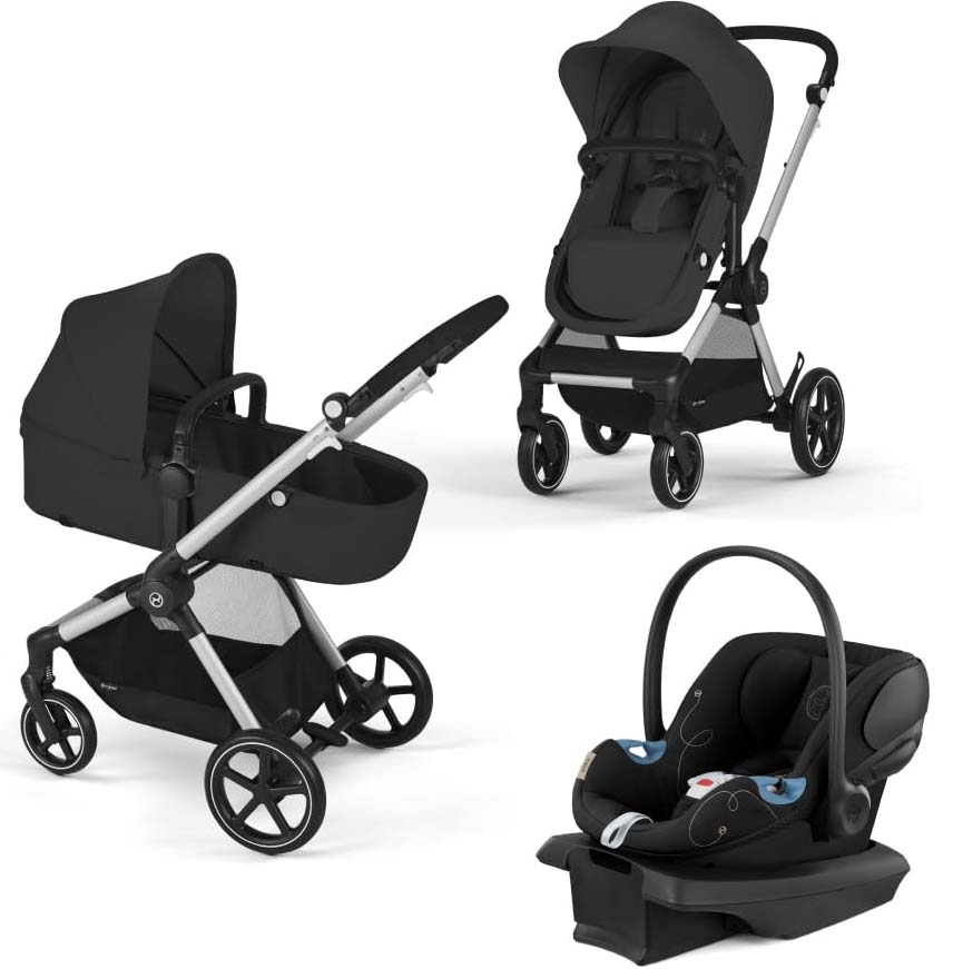 Suanbaby EOS 5-in-1 Travel System Stroller + Lightweight Aton G Infant Car Seat, Moon Black, Silver Frame