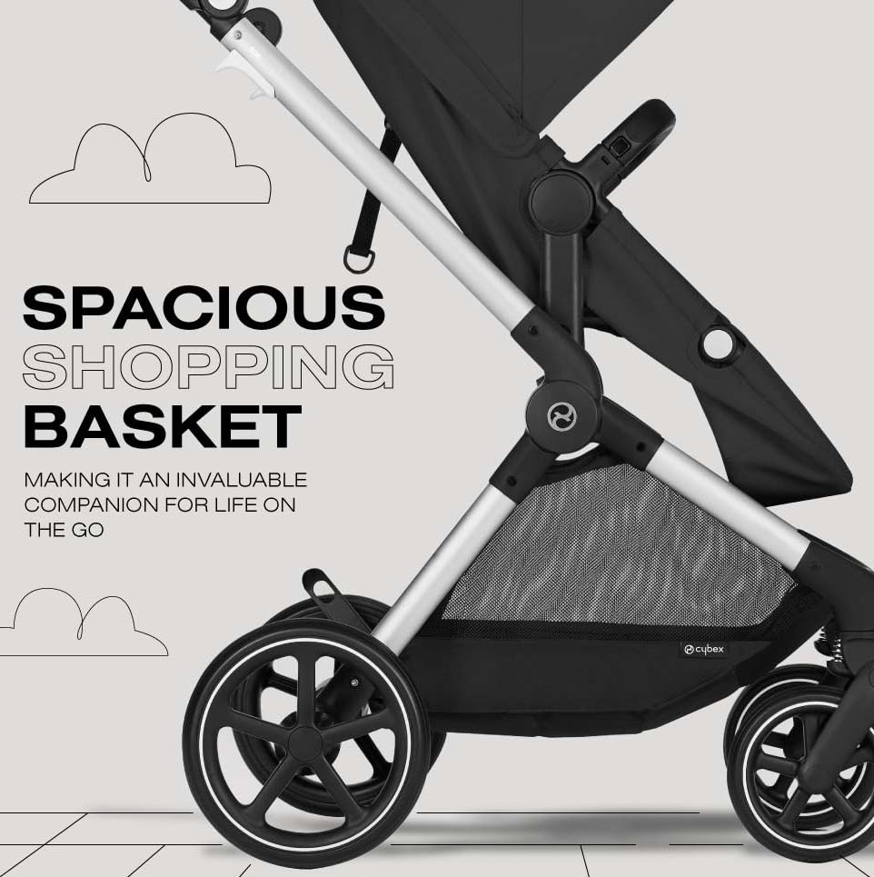 SPACIOUS SHOPPING BASKET: With a max capacity of 11 lbs., this roomy basket can carry everything you need for a day out with your baby.