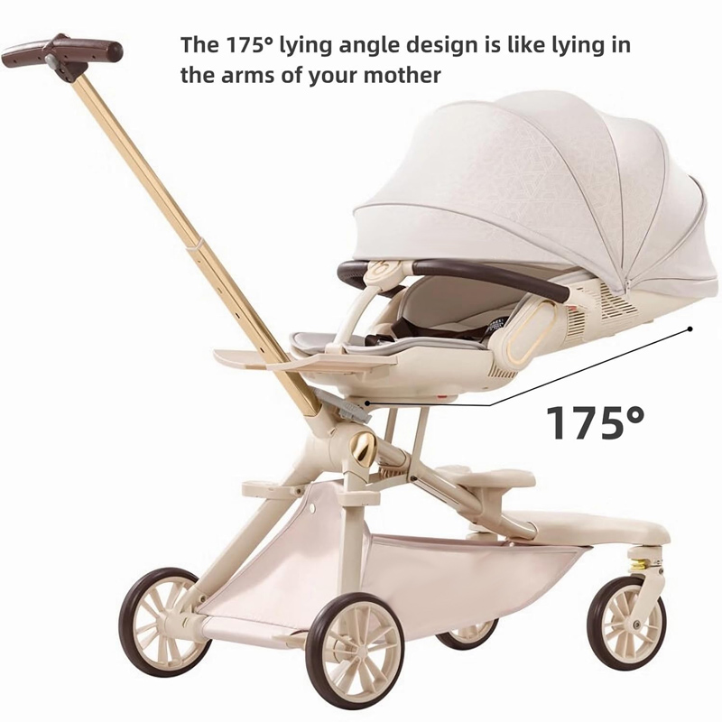 EASY TO FOLD: The new stroller features an innovative zero-gravity design with a net weight of only 18.2 lbs/8.3 kg and a variety of adjustment modes to meet different needs, including 95° for sitting, 145° for drinking and 175° for sleeping. It folds easily and takes up little space, so you can even take it on an airplane. The body is made of aluminum alloy frame, which has the advantages of durability and lightweight, perfect for traveling with infants