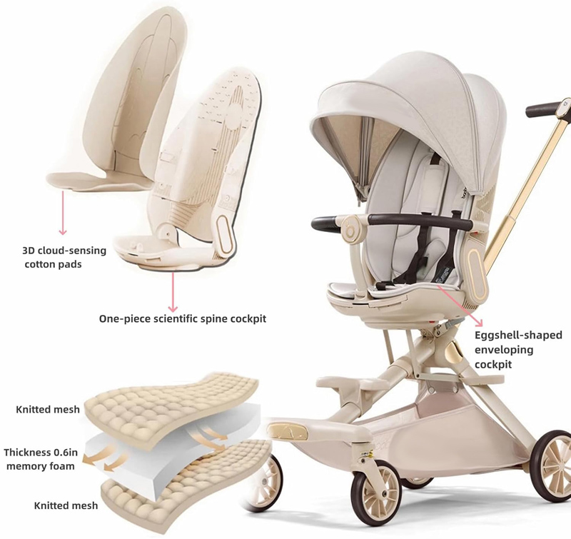 COMFORTABLE SEAT: Our strollers are designed with an elevated seat so that your little one can have a better view of their surroundings. The elevated seat not only enhances their visual experience . The one-piece model seat backrest provides ultimate comfort and support, equipped with winter and summer 3D cotton pads for all seasons
