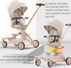 FLIPPABLE SEAT: The stroller’s innovative design allows for a fully adjustable seat,, the seat can be flipped forward or swiveled to face the parent, giving you the flexibility to interact with your child on the go