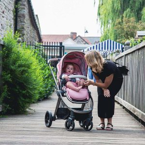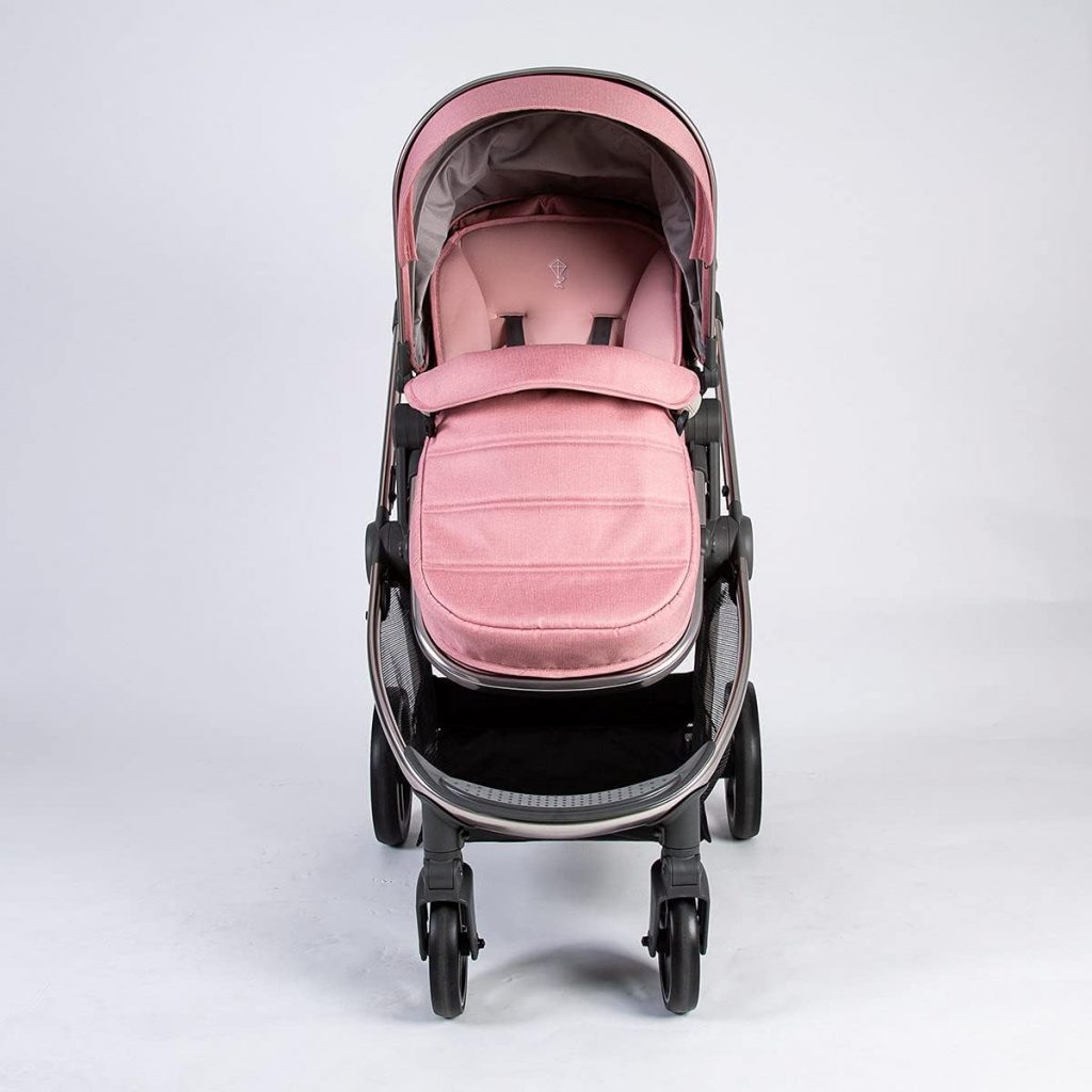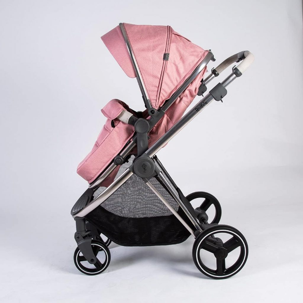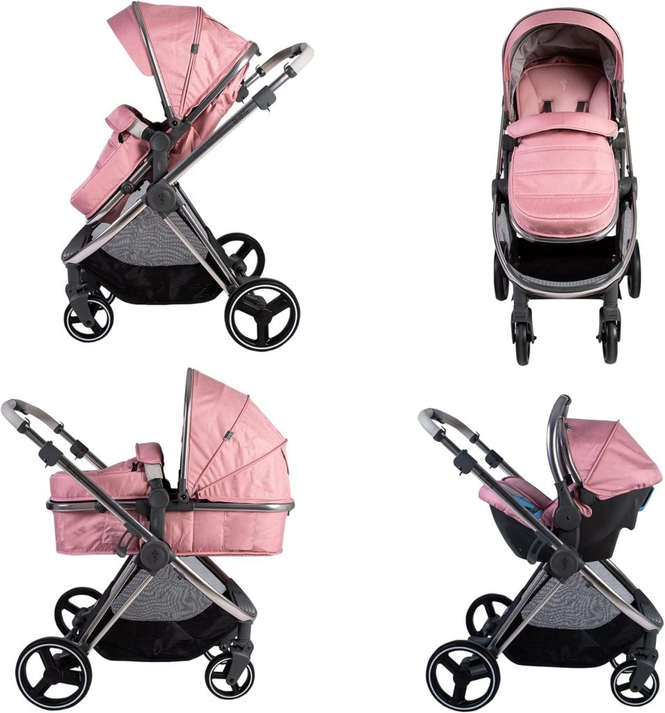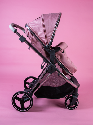The range of Push Me Pace Travel systems offers something for everyone. Quality finishes and a practical solution on this stylish travel system that features an ISOFIX compatible car seat and a wide range of features sure to be the destination choice for your new-born baby. Suitable from birth to an upper weight of 22kgs, the stroller seat features multi lie back positions, soft padded leg rest support with 5-point safety harness in stroller and 3-point harness in car seat. Stroller canopy is fully extendable with concealed zip sections, viewing see through flap and a retractable sun visor section. Finished in luxury soft touch fabrics also includes rain cover and stroller front apron. The Push Me Pace Blush features a stunning gunmetal grey frame with stylish pink premium fabrics.