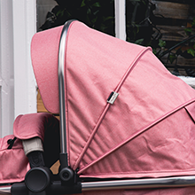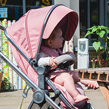 Finished in luxury soft touch fabrics. Soft padded leg rest support in stroller seat. Leather finish bumper bar and handle grips for stylish and practical use.