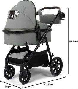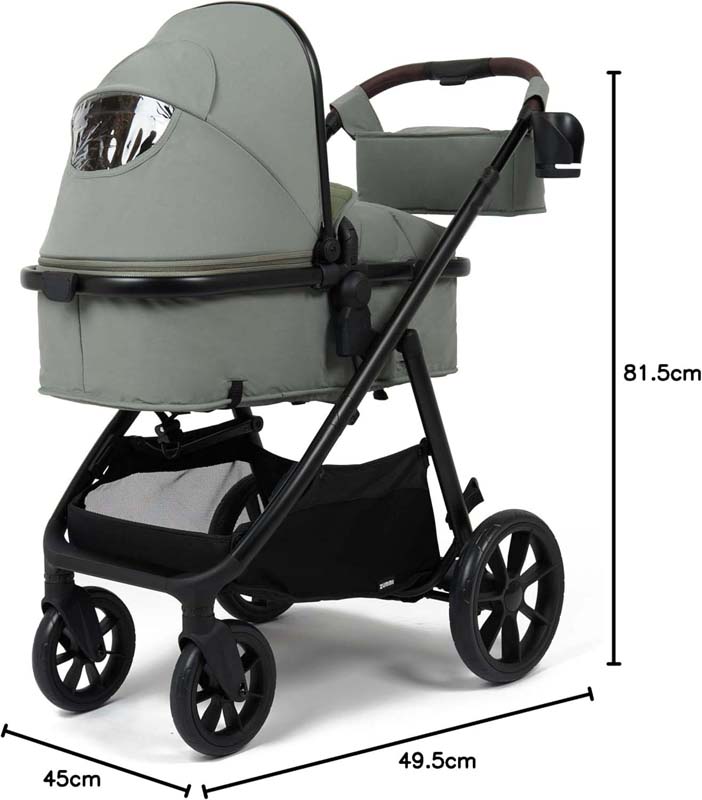 Included is an Enfasafe i-Size infant carrier, tested to ECE R129 standard for children between 40cm and 87cm in height and a maximum weight of 13kg, which attaches to the Zap pram frame to use as a travel system