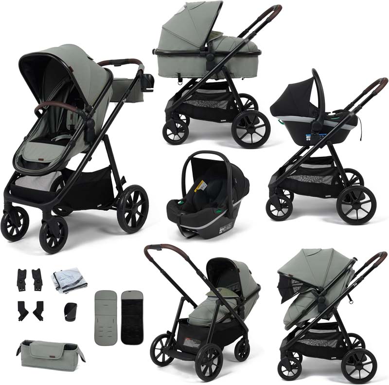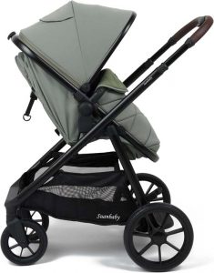 suanbaby Zap Travel System with i-Size Infant Carrier, Ride-on Board, Organiser and Cup Holder, from Birth up to 22 kg, Sage Green