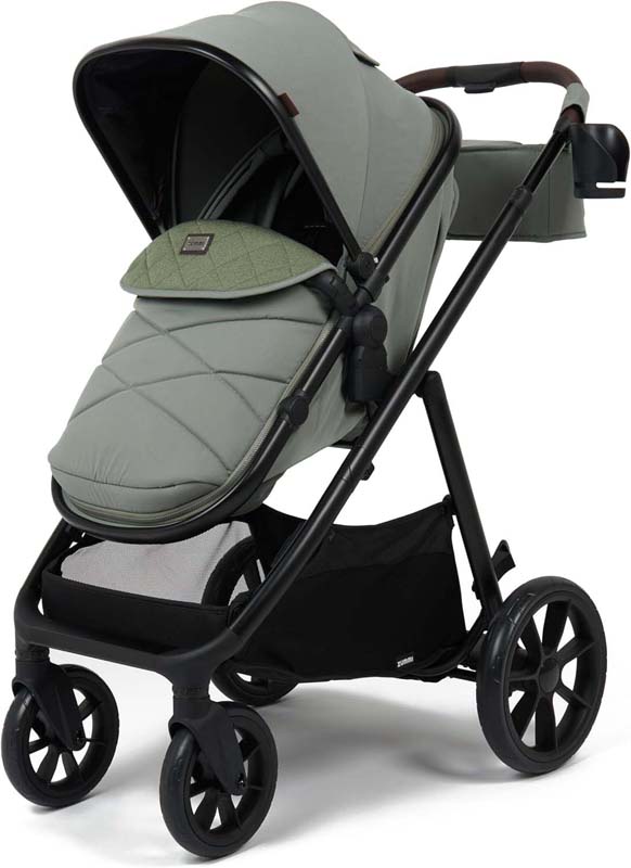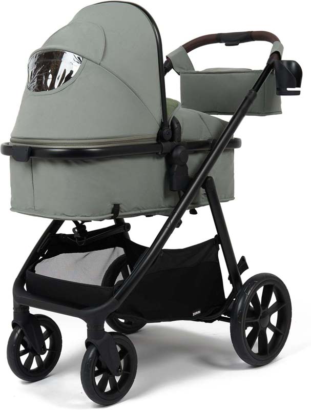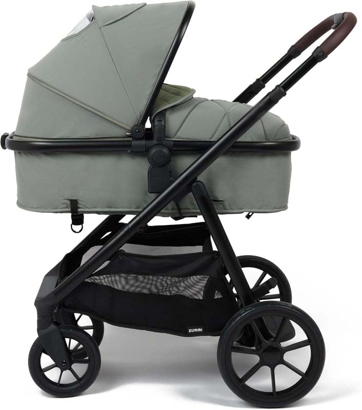 Zap has an extending canopy for added sun protection and a generous storage basket for all baby’s essentials, a convenient organiser for bottles and nappies which attaches to the pram frame, as well as a handy cup holder
