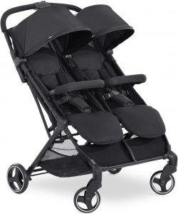 Suanbaby Swift X Duo, Black – Twin Pushchair with Raincover, Side by Side Double Stroller (only 75 cm wide), Compact & One Hand Folding, Lie-Flat Position