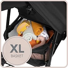 XL Storage space: The Sport buggy comes with an extra-large shopping basket in which you can keep all baby things as well as purchases ready to hand (up to 3 kg)