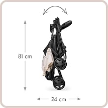 Easy folding: The pram folds away compactly (81 x 45 x 24 cm) within second by sliding the side locks upwards, allowing you to store it away space-savingly at home and in your car
